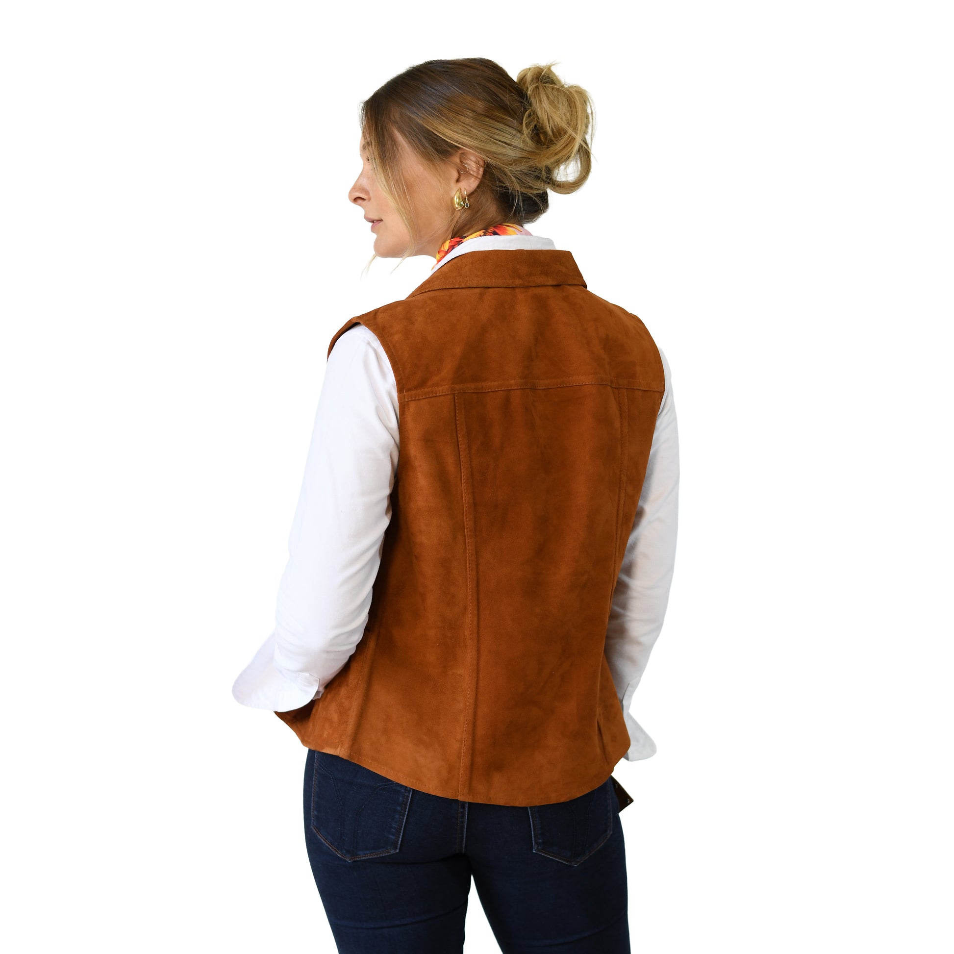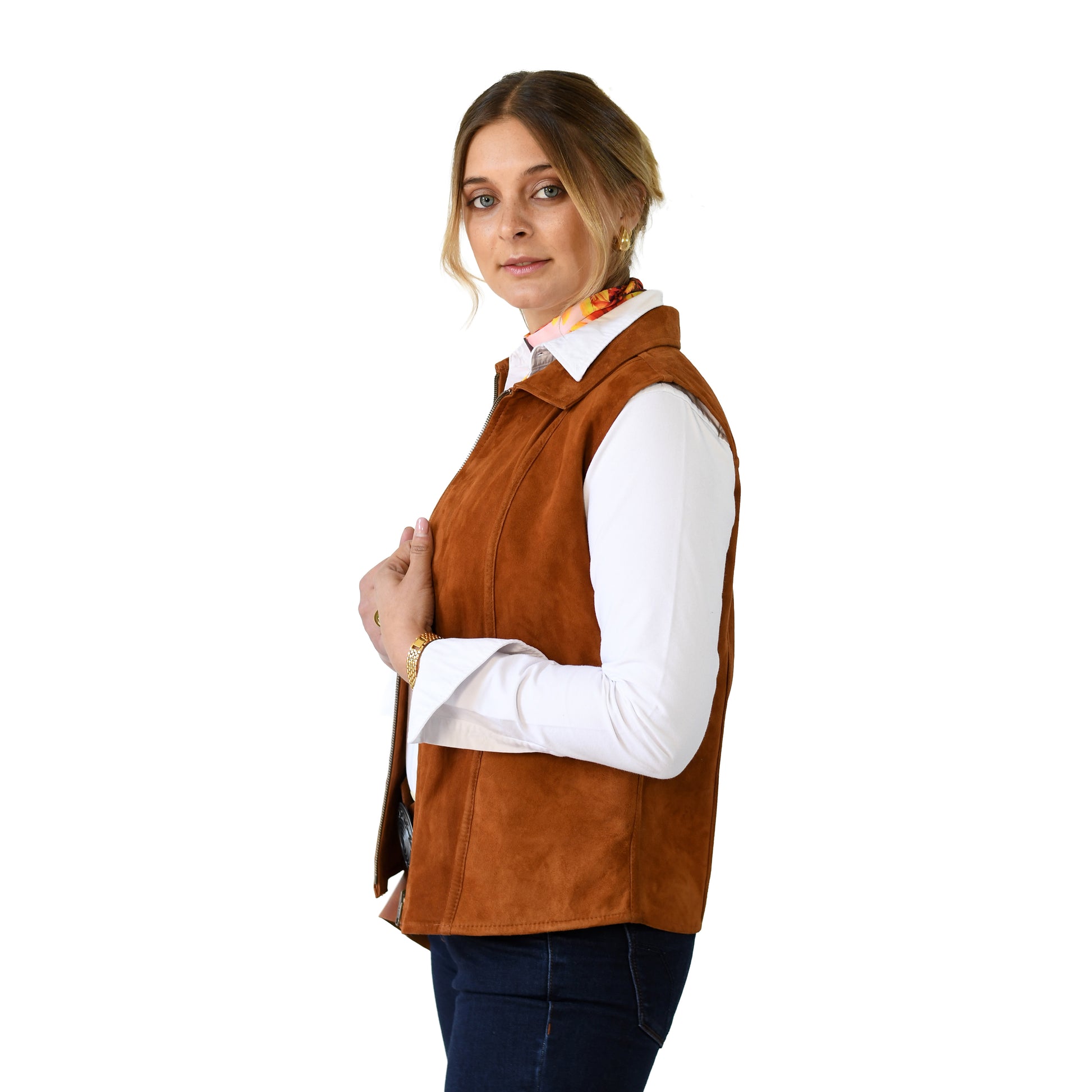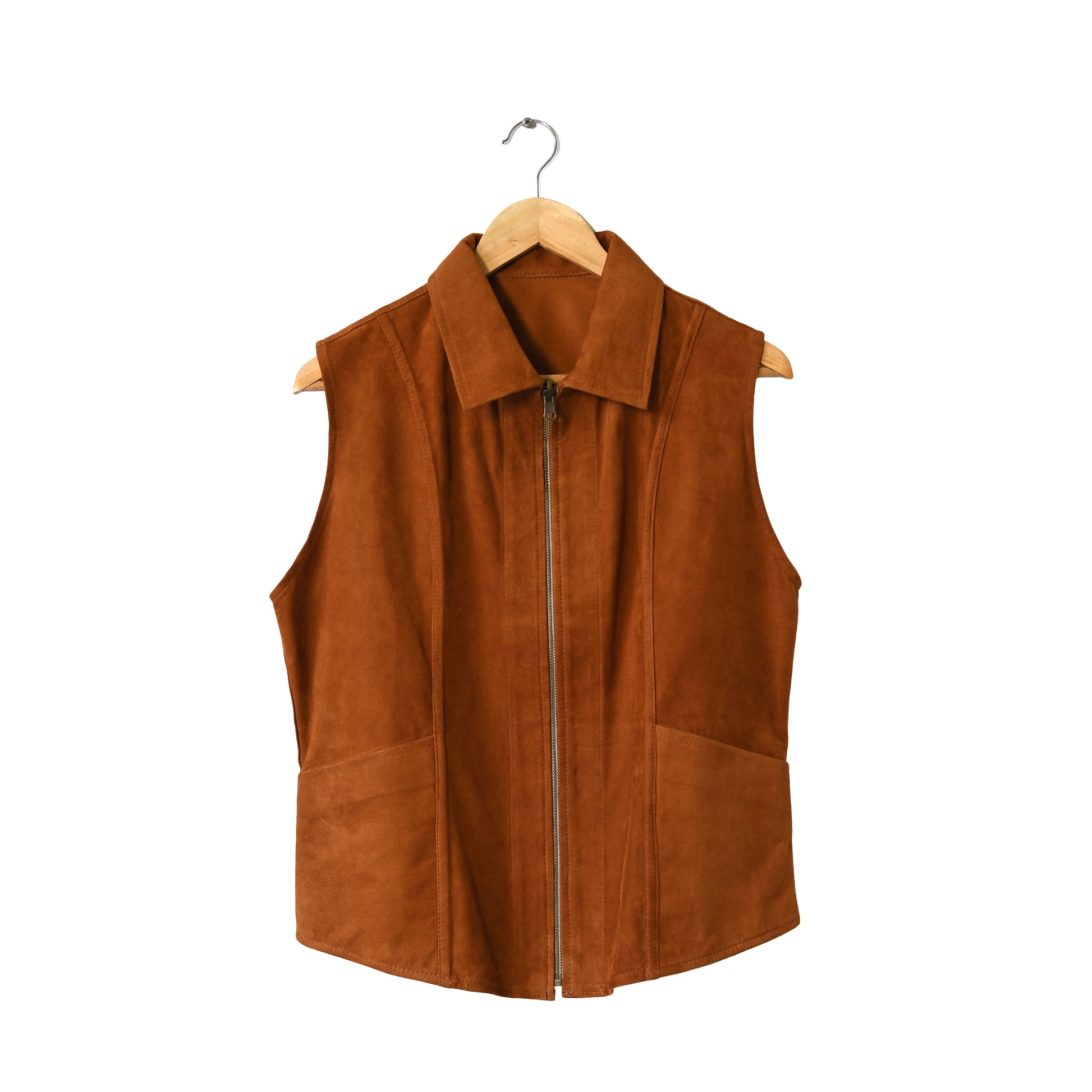 Chaleco de cuero de gamuza. Cierre frontal y dos bolsillos. Este es un producto , confeccionado con la mejor selección de materiales y la mas fina terminación.
