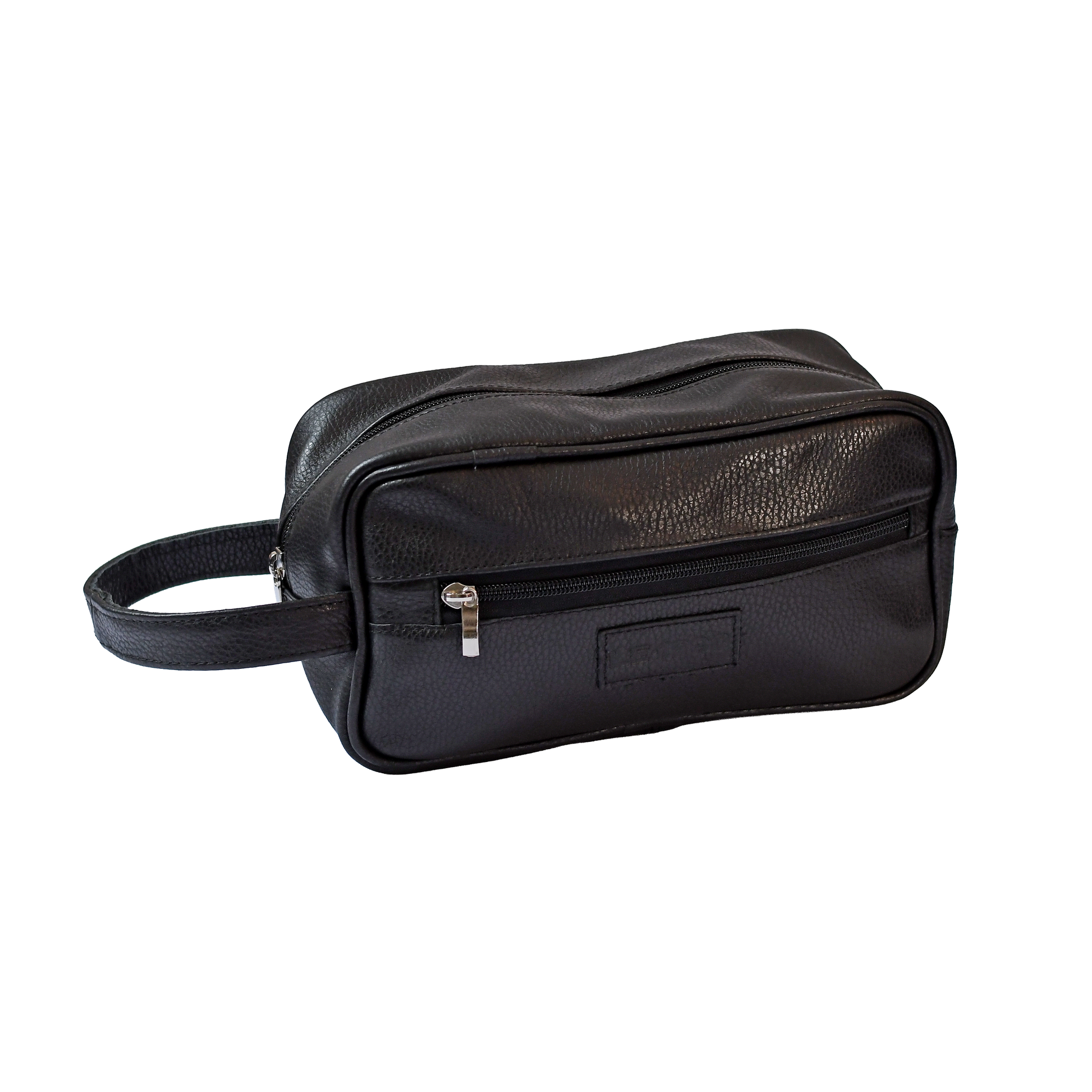 Neceser de cuero con muñequera, forrado en su interior.