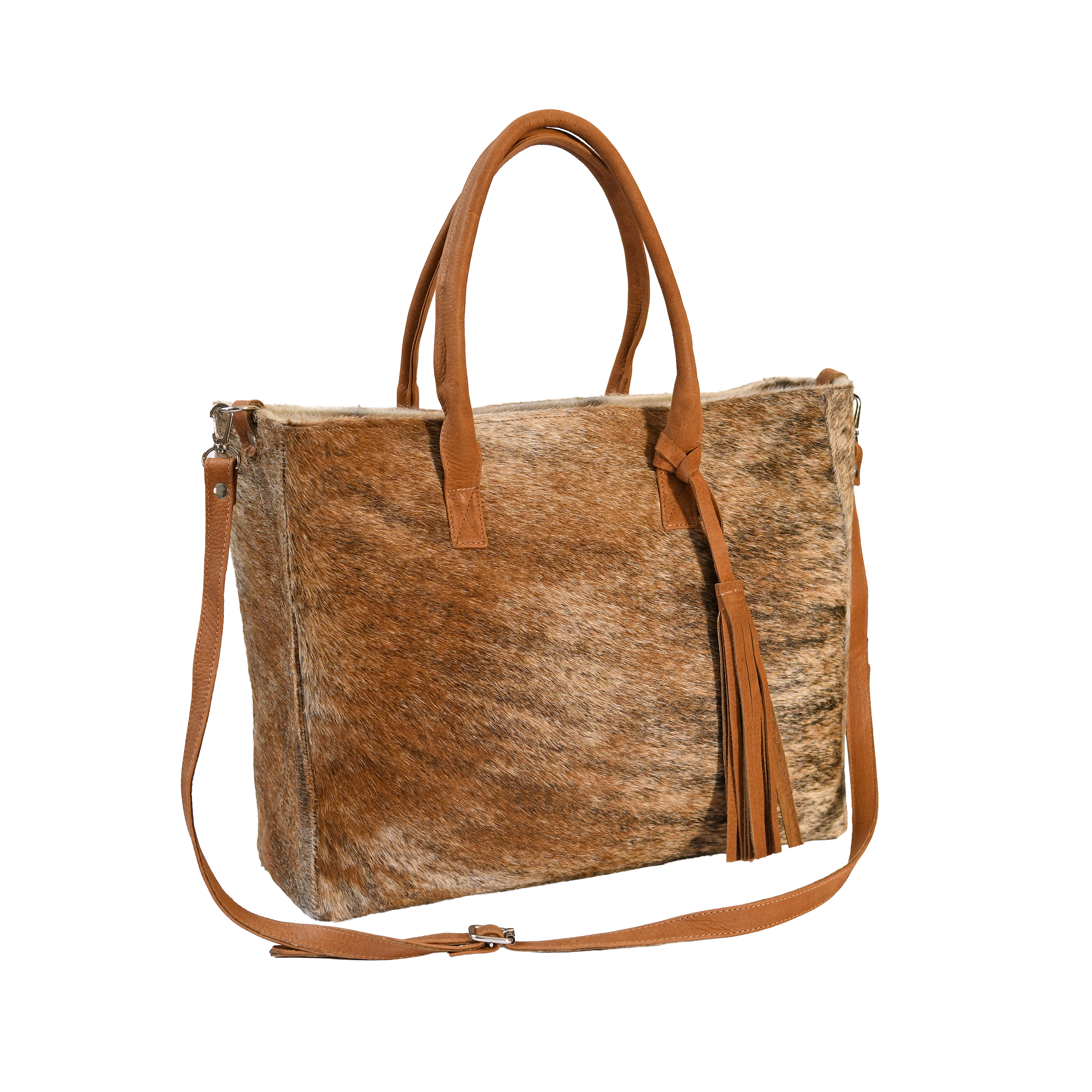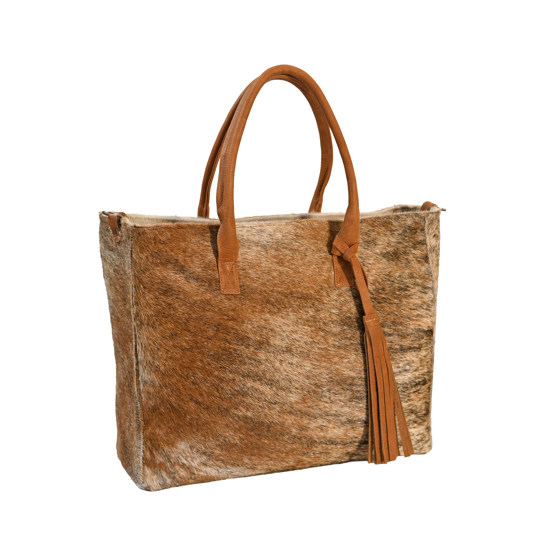 Maravilloso y estiloso Tote Bag, en pelo de vaca, full tendencia, con 1 compartimiento, bolsillo interno y forrado en su interior. 47 cm largo y 37 cm alto.